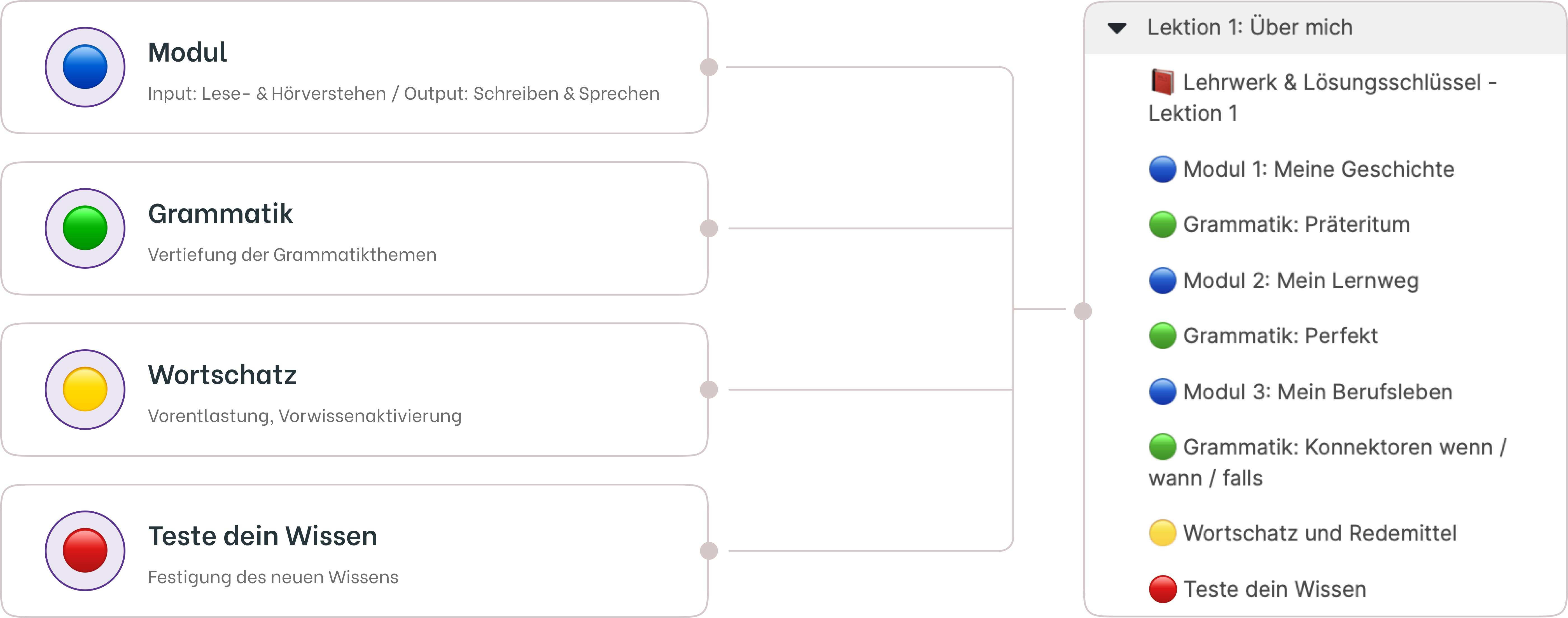 Die Grammatik ist immer mit den Wortschatzmodulen verbunden.