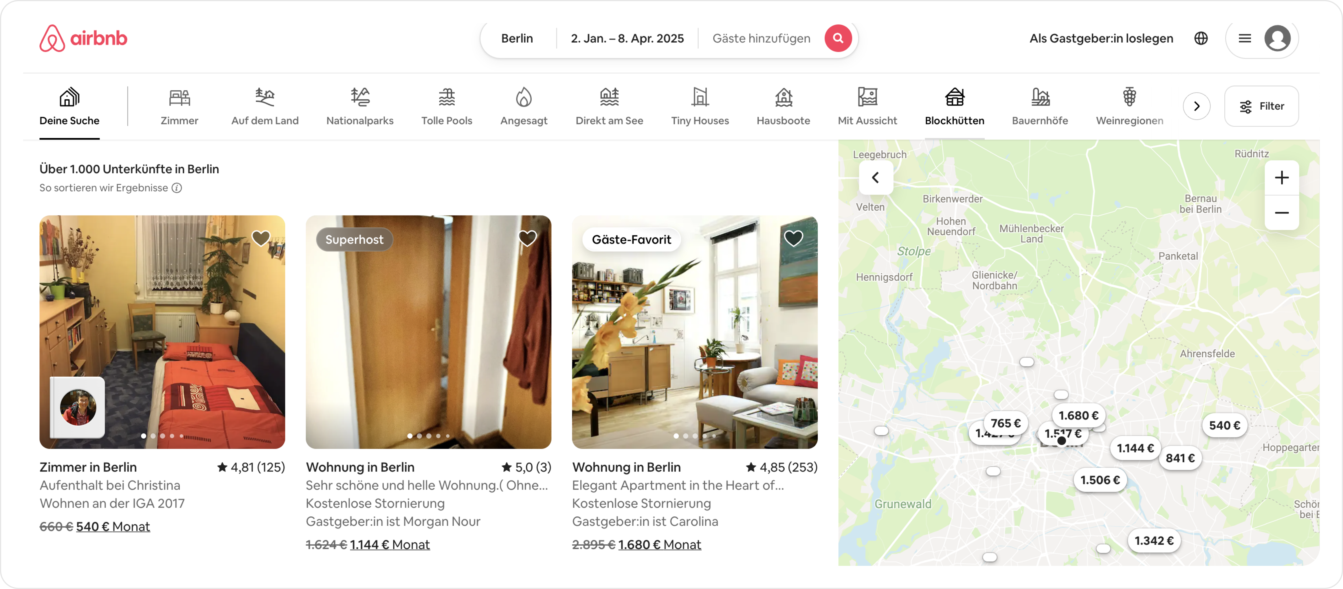 AirBnB (1 Zimmer) in Berlin: ab 1255 € pro Monat